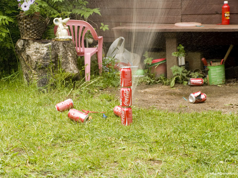 Во-первых мы узнали что бывает с Кока-колой, если ее расстрелять из пневматики: